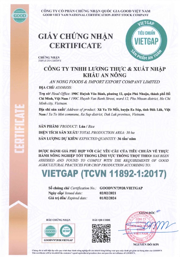 Văn phòng chứng nhận Quốc gia – GOOD Việt Nam là tổ chức được bộ Khoa học và Công nghệ chỉ định. Chúng tôi có đầy đủ năng lực để giúp khách hàng đánh giá sản phẩm theo tiêu chuẩn VietGAP và cấp chứng nhận VietGAP.