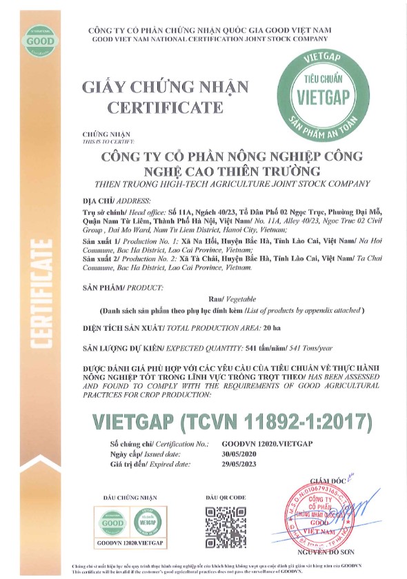 ✅GOOD VIỆT NAM là tổ chức có quyền trực tiếp cấp chứng nhận VietGap.
