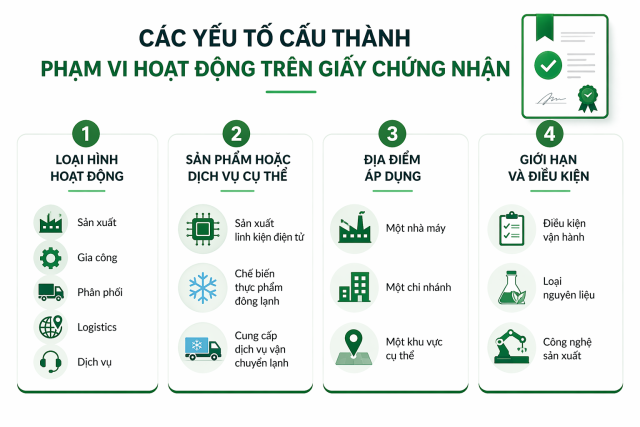 Các yếu tố cấu thành phạm vi hoạt động trên giấy chứng nhận