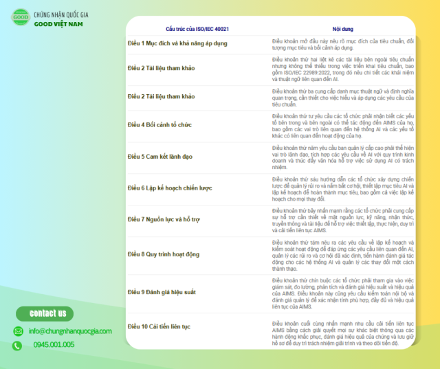 ISO/IEC 42001 được cấu trúc để bao gồm 10 điều khoản toàn diện: