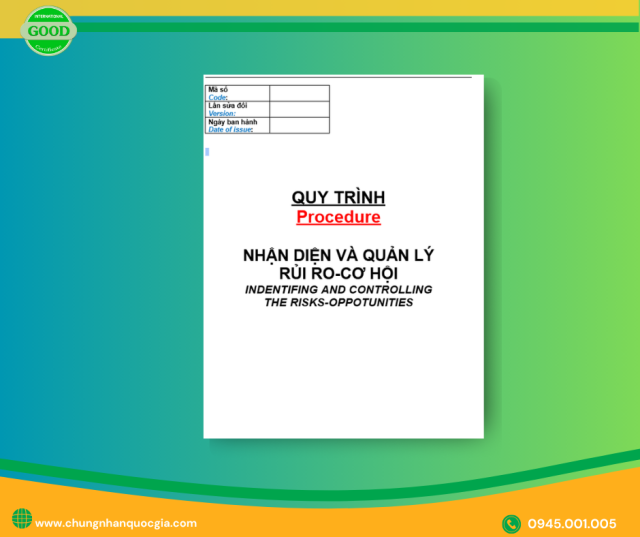 Để đảm bảo toàn bộ quá trình này được triển khai nhất quán, minh bạch và có thể chứng minh với các bên liên quan, doanh nghiệp cần có Quy trình Nhận Diện và Quản Lý Rủi Ro – Cơ Hội được thiết lập rõ ràng và phù hợp với bối cảnh hoạt động. Quy trình này cũng chính là tài liệu mà bạn có thể xem trong file PDF đính kèm bên dưới, đóng vai trò như hướng dẫn thực thi giúp doanh nghiệp quản lý hệ thống một cách có hệ thống và hiệu quả.
